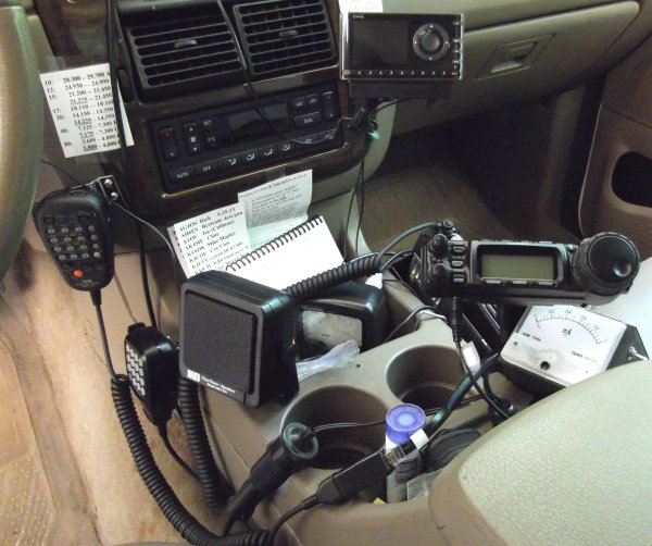I made a total of about 29 contacts, but some may not count. I was in the car a long time Saturday, but I did have a lot of fun. Had a camera and a tiny tripod and with timer, I could take the photos you see with ME in the photos. I was single driver and single operator.